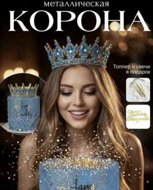 Голубая корона для украшения торта. Украшена стразами и камнями, создающими блеск.