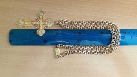 Предлагаю мужскую золотую цепочку с крестиком,585 пробы ,весом 133 гр,плетение Бисмарк,алмазная огранка.