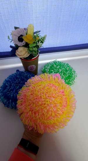 Красивые, качественные, пушистые мочалки. Нить средней жесткости. Не вытягиваются.