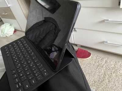 Есть трещина на стекле,зарядка, клавиатура в комплекте