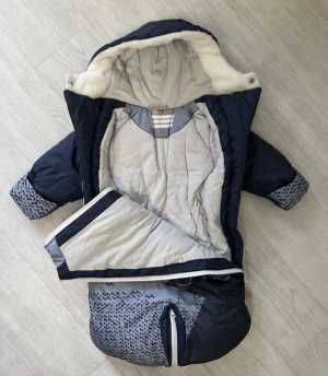 Продам зимний конверт для мальчика, трансформируется в комбинезон. Размер с рождения до 74см.