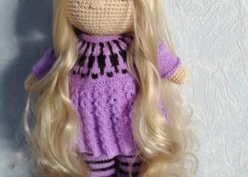 Кукла Беляночка, связана крючком из хлопковой пряжи, без каркаса. Наполнитель синтепух. Волосы, - искусственные трессы.