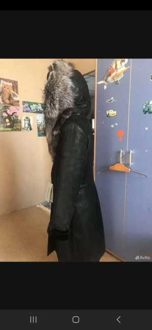 легкая натуральная дубленка б.у..в отличном состоянии..52рр с капюшоном..отделка чернобурка....доставки нет.
