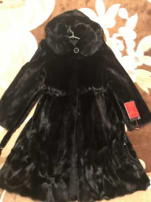 Новая шуба из нутрии,52-54 размер,с капюшоном.Рукав 65 см,обхват в талии 130 см,в груди 122 см.