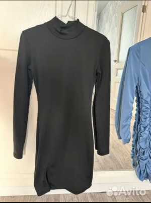 Продам чёрное женское платье с кожаной вставкой. Размер 46. ( также подойдёт и на 44 и возможно на48) хорошо тянется.