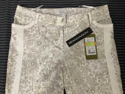 Классные брюки, яркие, тонкие, лёгкие, в составе хлопок и лайкра, длина 7/8,тянутся. Идеальное состояние и отличное качество.