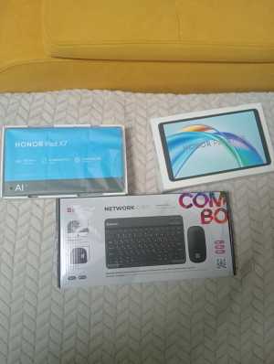 Продам срочно планшет хонор пад x7 состояние нового без коцыков полный комплект с клавиатурой и мышью по блютуз