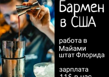 Обязанности: • Для работы в штате Флорида (г. Майами) срочно требуются бармены.