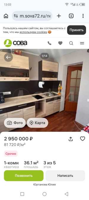 Продается просторная квартира формата 1+ в районе Червишевского тракта! Уважаемые покупатели! Предлагаем вашему вниманию...